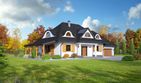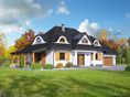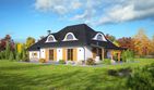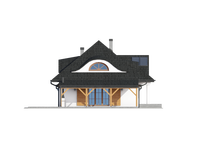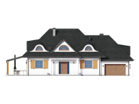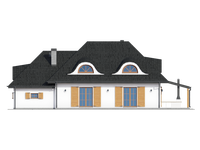 Graficzne opracowanie rzutów poglądowych widocznych na karcie projektu zostało wykonane przez Extradom.pl. Prezentowane przez Extradom.pl wizualizacje wykonane zostały przez autora projektu i należy poczytywać je jedynie za przykład i propozycję wykończenia, wizję architektoniczną autora projektu. Ostateczne wykończenie budynku może nastąpić na wiele sposobów. Szczegółowe rozwiązania zastosowane w oferowanej dokumentacji - w tym również ilość, lokalizacje i wygląd okien, drzwi, kominów - mogą w niewielkim stopniu różnić się od prezentowanej wizualizacji budynku.