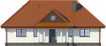 Graficzne opracowanie rzutów poglądowych widocznych na karcie projektu zostało wykonane przez Extradom.pl. Prezentowane przez Extradom.pl wizualizacje wykonane zostały przez autora projektu i należy poczytywać je jedynie za przykład i propozycję wykończenia, wizję architektoniczną autora projektu. Ostateczne wykończenie budynku może nastąpić na wiele sposobów. Szczegółowe rozwiązania zastosowane w oferowanej dokumentacji - w tym również ilość, lokalizacje i wygląd okien, drzwi, kominów - mogą w niewielkim stopniu różnić się od prezentowanej wizualizacji budynku.