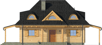 Wysokość ścianki kolankowej: 0.92 m. Strop: drewniany. Pokrycie dachu: dachówka gontopodobna Gerard Corona. Ściany zewnętrzne: płazy drewniane + wełna mineralna + deska. Ściany wewnętrzne: płazy drewniane. Typ ogrzewania: kocioł gazowy. Instalacje dodatkowe: instalacja solarna.