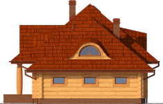 Wysokość ścianki kolankowej: 0.7 m. Strop: drewniany. Pokrycie dachu: dachówka gontopodobna Gerard Corona. Ściany zewnętrzne: płazy drewniane + wełna mineralna + deska. Ściany wewnętrzne: płazy drewniane. Typ ogrzewania: kocioł gazowy lub kocioł na paliwo stałe.