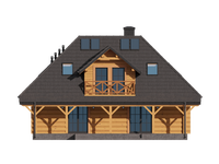 Wysokość ścianki kolankowej: 0.74 m. Strop: drewniany. Pokrycie dachu: dachówka gontopodobna Gerard Corona. Ściany zewnętrzne: płazy drewniane + wełna mineralna + deska. Ściany wewnętrzne: płazy drewniane. Typ ogrzewania: kocioł gazowy lub kocioł na paliwo stałe. Instalacje dodatkowe: instalacja solarna. Inne: okna dachowe Fakro Greenview.