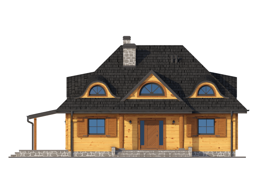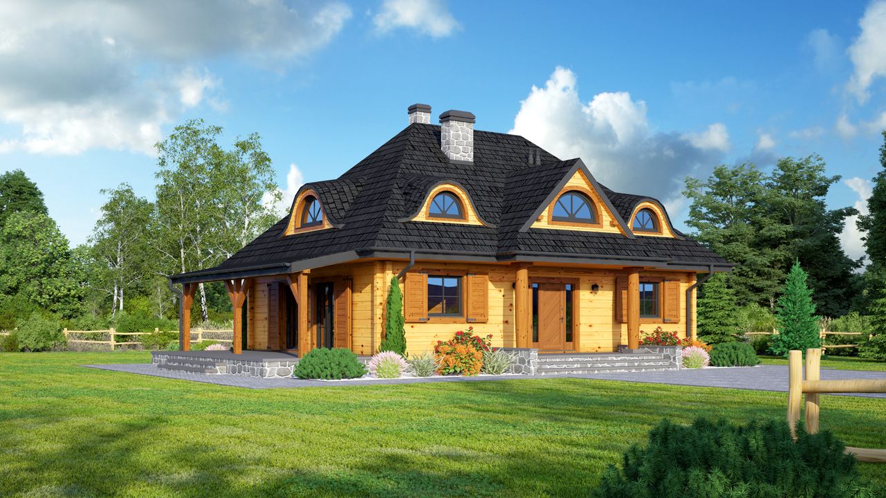 Przy wyborze odpowiedniego projektu domu największą uwagę zwracaliśmy na uwzględniony wewnątrz układ pomieszczeń. W tej kwestii sprawą priorytetową był dla nas salon o sporych wymiarach oraz cztery sypialnie. Spośród propozycji spełniających powyższe kryteria najbardziej do gustu przypadł nam projekt domu Chmielniki małe dw KRP1297.Nasza budowa przebiegła bardzo sprawnie, a współpracujący z nami fachowcy świetnie poradzili sobie ze wszystkimi pracami. Postanowiliśmy zastosować zalecaną przez architekta technologię budowy i do postawienia nowego domu użyliśmy drewnianych bali, a dach pokryliśmy blachodachówką z posypką. Realizacja domu drewnianego trwa naprawdę krótko i już po 3 miesiącach od rozpoczęcia pierwszych prac budynek stanął w stanie surowym zamkniętym. Wykończenia trwały jeszcze krócej, bo tylko 2 miesiące, tak więc cała inwestycja zajęła nam niecałe pół roku. Muszę jednak przyznać, iż koszty budowy przekroczyły kwotę oszacowaną w kosztorysie.Do oryginalnej wersji projektu nie wprowadziliśmy wielu zmian, aczkolwiek świetnym pomysłem było wydłużenie załamanej połaci dachu nad tarasem o ok. 1,5 m. Oprócz tego postanowiliśmy zrezygnować ze spiżarki oraz kotłowni w domu, a ich metraż przeznaczyliśmy na powiększenie kuchni. Przy domu postawiliśmy osobny garaż i to właśnie w nim wygospodarowaliśmy miejsce na zrobienie kotłowni. Dom oraz wodę użytkową ogrzewamy za pomocą pieca na ekogroszek, a obecnie jesteśmy w trakcie drugiej zimy od zamieszkania. W zeszłym sezonie grzewczym zużyliśmy opał nabyty za ok. 2 tys. zł.Jesteśmy bardzo zadowoleni z wyboru projektu domu parterowego z poddaszem użytkowym Chmielniki małe dw KRP1297. Nowy dom jest dla nas po prostu idealny - wszystko jest dokładnie takie, jak chcieliśmy. Póki co mieszkamy we dwójkę, jednak jestem przekonana, że uwzględniony metraż i liczba pokoi będą w pełni komfortowe nawet dla 5-osobowej rodziny. Pozdrawiam.