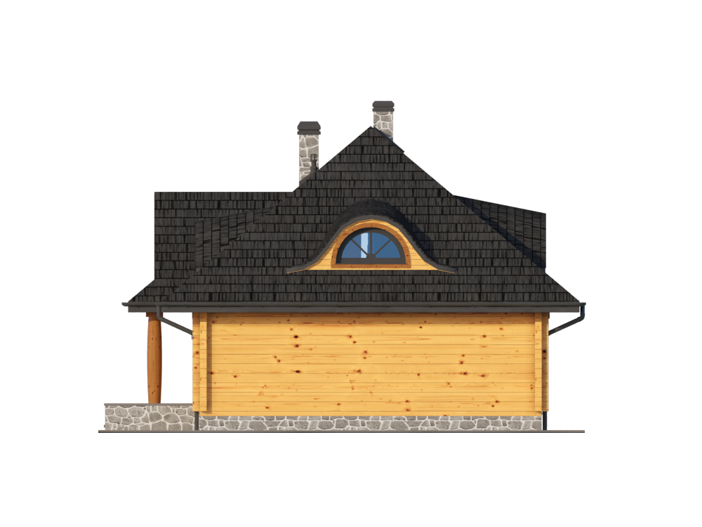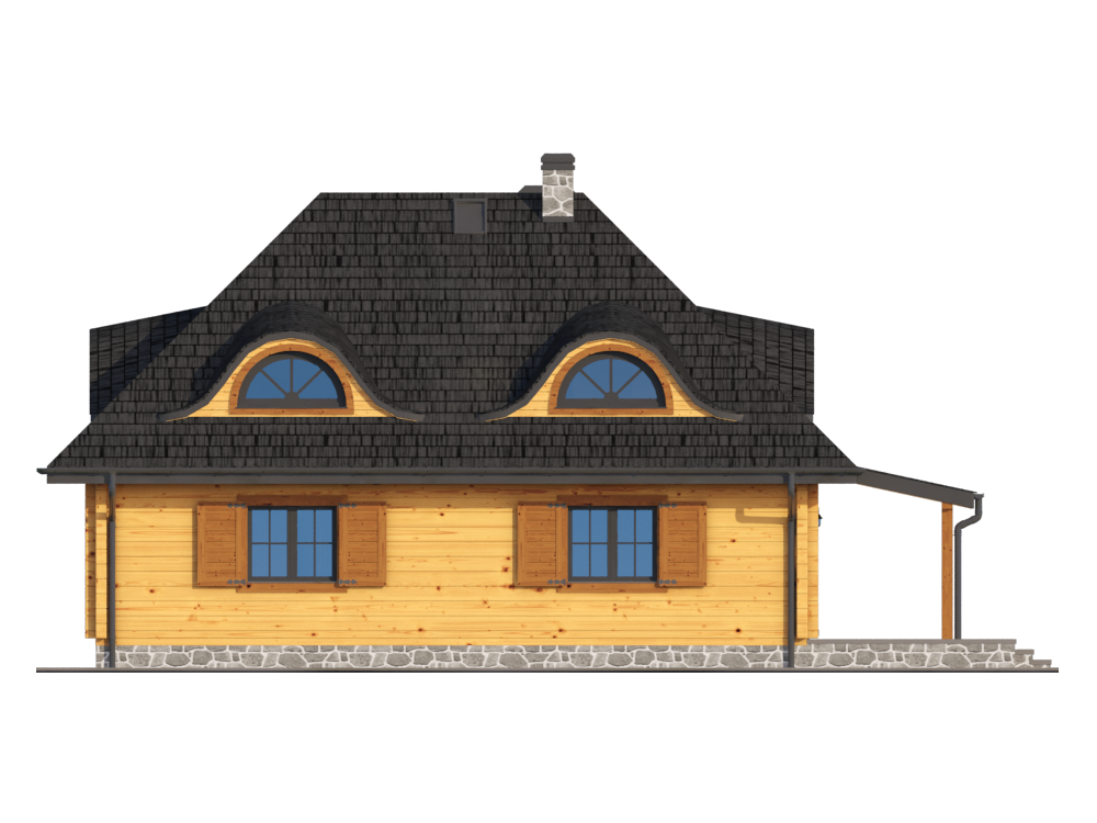 Wysokość ścianki kolankowej: 0.66 m. Strop: drewniany. Pokrycie dachu: dachówka gontopodobna Gerard Corona. Ściany zewnętrzne: płazy drewniane + wełna mineralna + deska. Ściany wewnętrzne: płazy drewniane. Typ ogrzewania: kocioł gazowy lub kocioł na paliwo stałe.