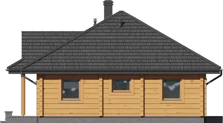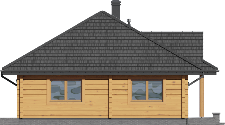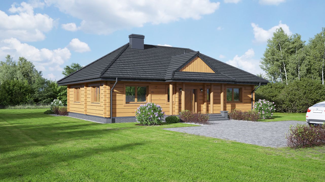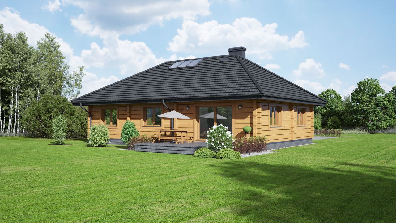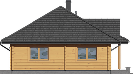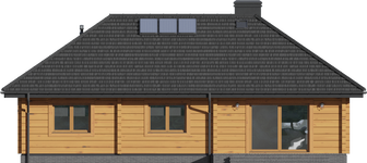Ilość drewna na więźbę: 10.3 m³. Strop: drewniany. Pokrycie dachu: dachówka gontopodobna Gerard Corona. Ściany zewnętrzne: płazy drewniane + wełna mineralna + deska. Ściany wewnętrzne: płazy drewniane. Typ ogrzewania: kocioł gazowy lub kocioł na paliwo stałe. Instalacje dodatkowe: instalacja solarna.