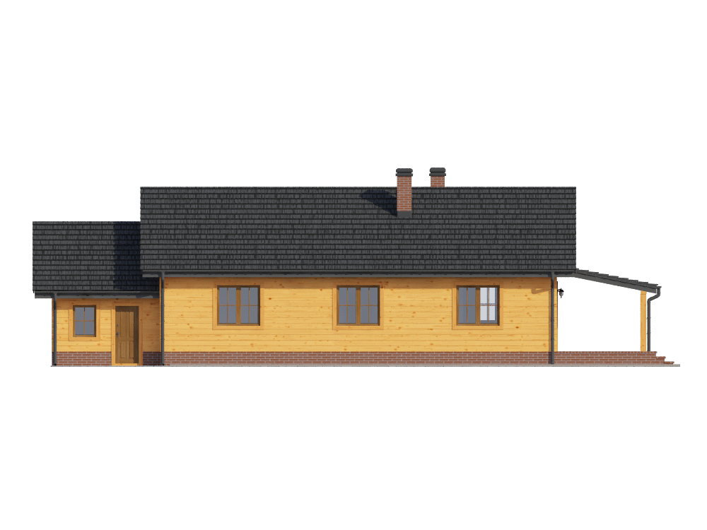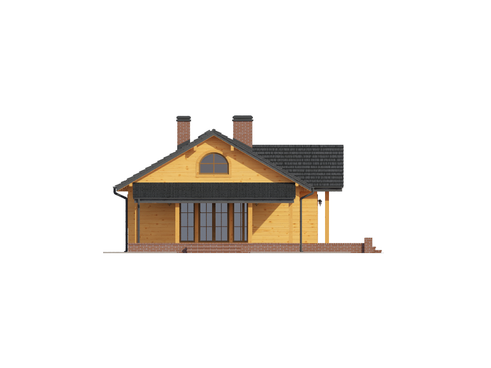 Graficzne opracowanie rzutów poglądowych widocznych na karcie projektu zostało wykonane przez Extradom.pl. Prezentowane przez Extradom.pl wizualizacje wykonane zostały przez autora projektu i należy poczytywać je jedynie za przykład i propozycję wykończenia, wizję architektoniczną autora projektu. Ostateczne wykończenie budynku może nastąpić na wiele sposobów. Szczegółowe rozwiązania zastosowane w oferowanej dokumentacji - w tym również ilość, lokalizacje i wygląd okien, drzwi, kominów - mogą w niewielkim stopniu różnić się od prezentowanej wizualizacji budynku.