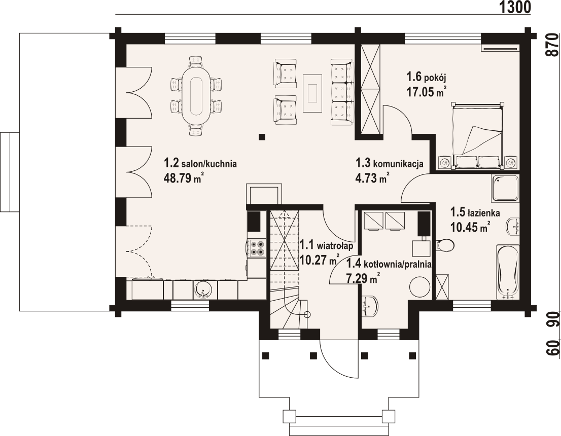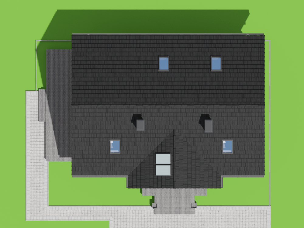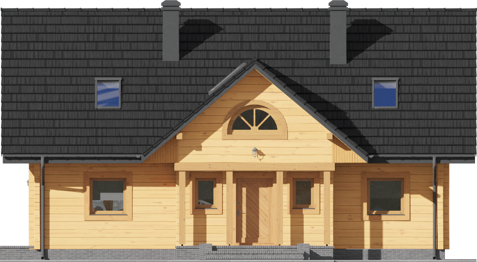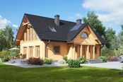 Graficzne opracowanie rzutów poglądowych widocznych na karcie projektu zostało wykonane przez Extradom.pl. Prezentowane przez Extradom.pl wizualizacje wykonane zostały przez autora projektu i należy poczytywać je jedynie za przykład i propozycję wykończenia, wizję architektoniczną autora projektu. Ostateczne wykończenie budynku może nastąpić na wiele sposobów. Szczegółowe rozwiązania zastosowane w oferowanej dokumentacji - w tym również ilość, lokalizacje i wygląd okien, drzwi, kominów - mogą w niewielkim stopniu różnić się od prezentowanej wizualizacji budynku.
