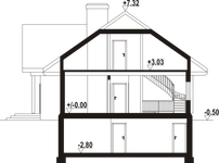Graficzne opracowanie rzutów poglądowych widocznych na karcie projektu zostało wykonane przez Extradom.pl. Prezentowane przez Extradom.pl wizualizacje wykonane zostały przez autora projektu i należy poczytywać je jedynie za przykład i propozycję wykończenia, wizję architektoniczną autora projektu. Ostateczne wykończenie budynku może nastąpić na wiele sposobów. Szczegółowe rozwiązania zastosowane w oferowanej dokumentacji - w tym również ilość, lokalizacje i wygląd okien, drzwi, kominów - mogą w niewielkim stopniu różnić się od prezentowanej wizualizacji budynku.