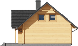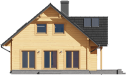 Wysokość ścianki kolankowej: 0.55 m. Strop: drewniany. Pokrycie dachu: dachówka gontopodobna Gerard Corona. Ściany zewnętrzne: płazy drewniane + wełna mineralna + deska. Ściany wewnętrzne: płazy drewniane. Typ ogrzewania: kocioł na paliwo stałe. Instalacje dodatkowe: instalacja solarna.