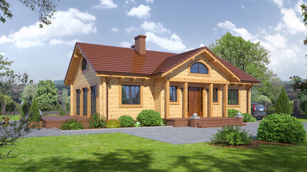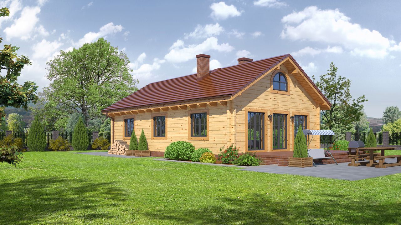 Strop: drewniany. Pokrycie dachu: dachówka gontopodobna Gerard Corona. Ściany zewnętrzne: płazy drewniane + wełna mineralna + deska. Ściany wewnętrzne: płazy drewniane. Typ ogrzewania: kocioł gazowy lub kocioł na paliwo stałe.