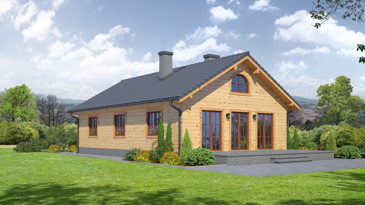 Strop: drewniany. Pokrycie dachu: dachówka gontopodobna Gerard Corona. Ściany zewnętrzne: szkieletowe drewniane ocieplone wełną mineralną. Ściany wewnętrzne: szkieletowe drewniane. Typ ogrzewania: kocioł gazowy lub kocioł na paliwo stałe.