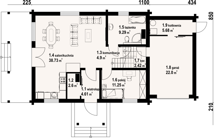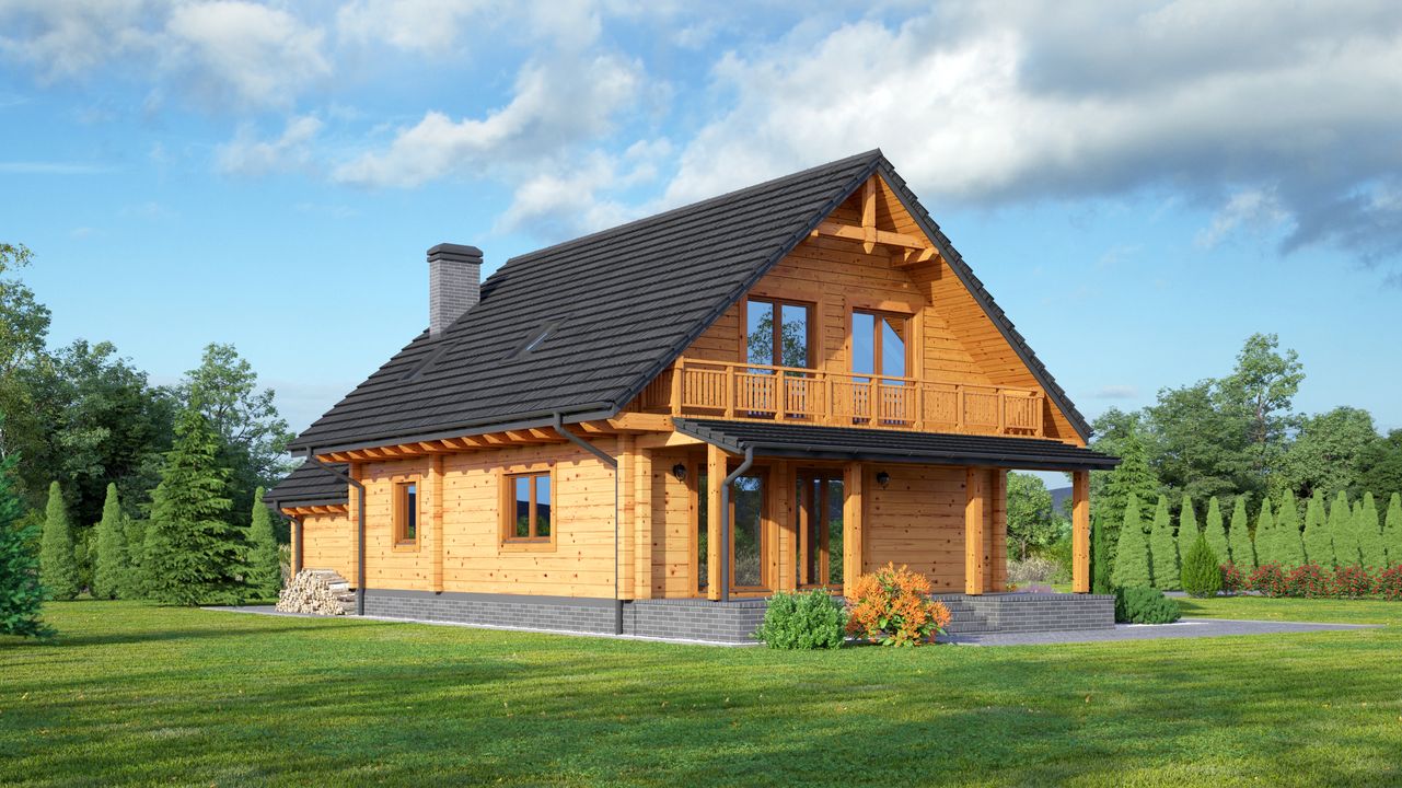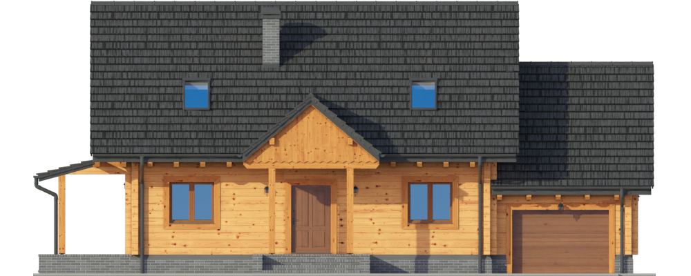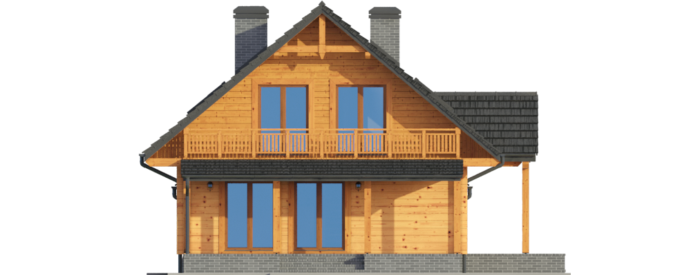 Graficzne opracowanie rzutów poglądowych widocznych na karcie projektu zostało wykonane przez Extradom.pl. Prezentowane przez Extradom.pl wizualizacje wykonane zostały przez autora projektu i należy poczytywać je jedynie za przykład i propozycję wykończenia, wizję architektoniczną autora projektu. Ostateczne wykończenie budynku może nastąpić na wiele sposobów. Szczegółowe rozwiązania zastosowane w oferowanej dokumentacji - w tym również ilość, lokalizacje i wygląd okien, drzwi, kominów - mogą w niewielkim stopniu różnić się od prezentowanej wizualizacji budynku.