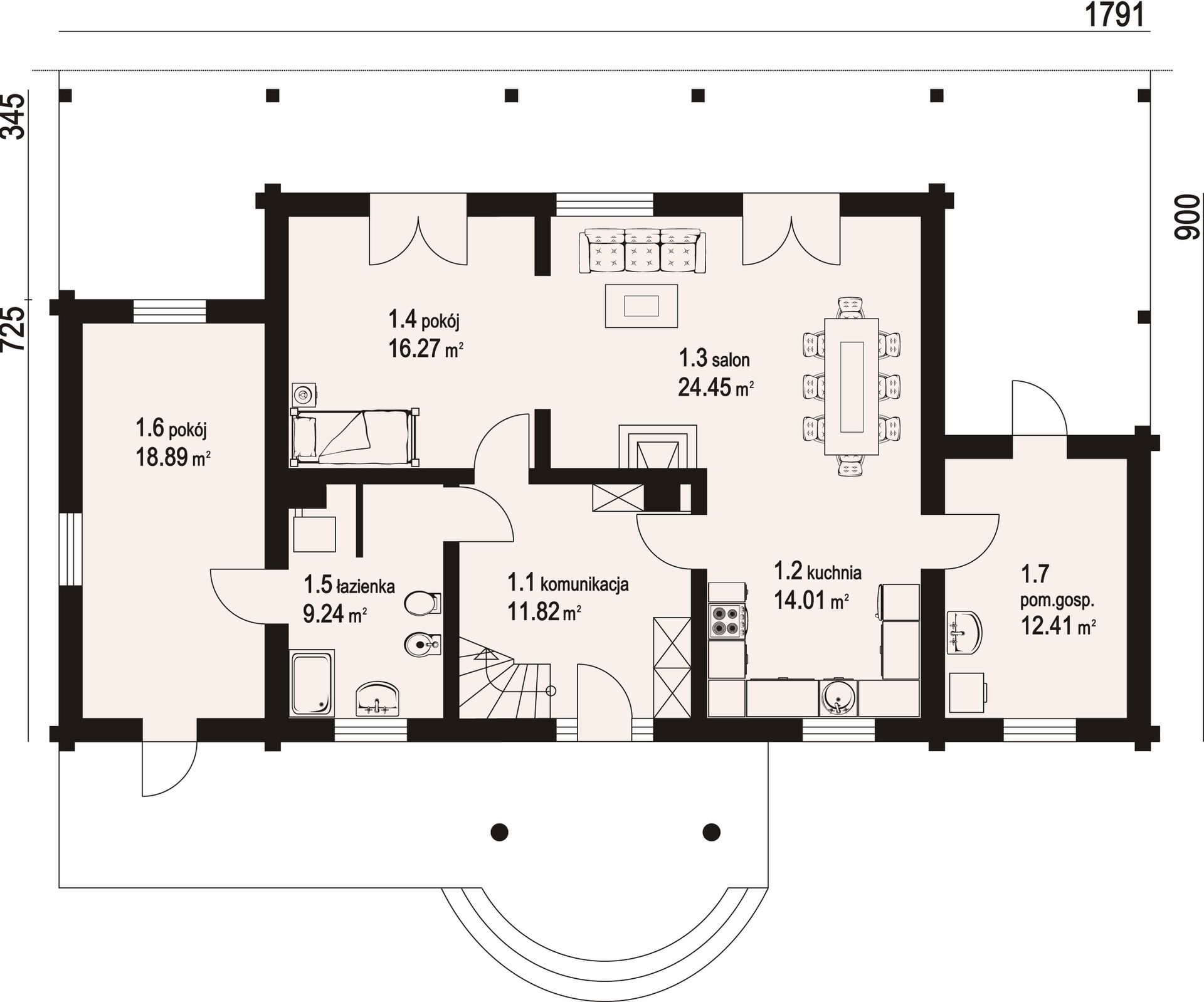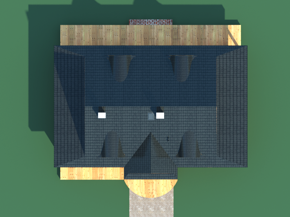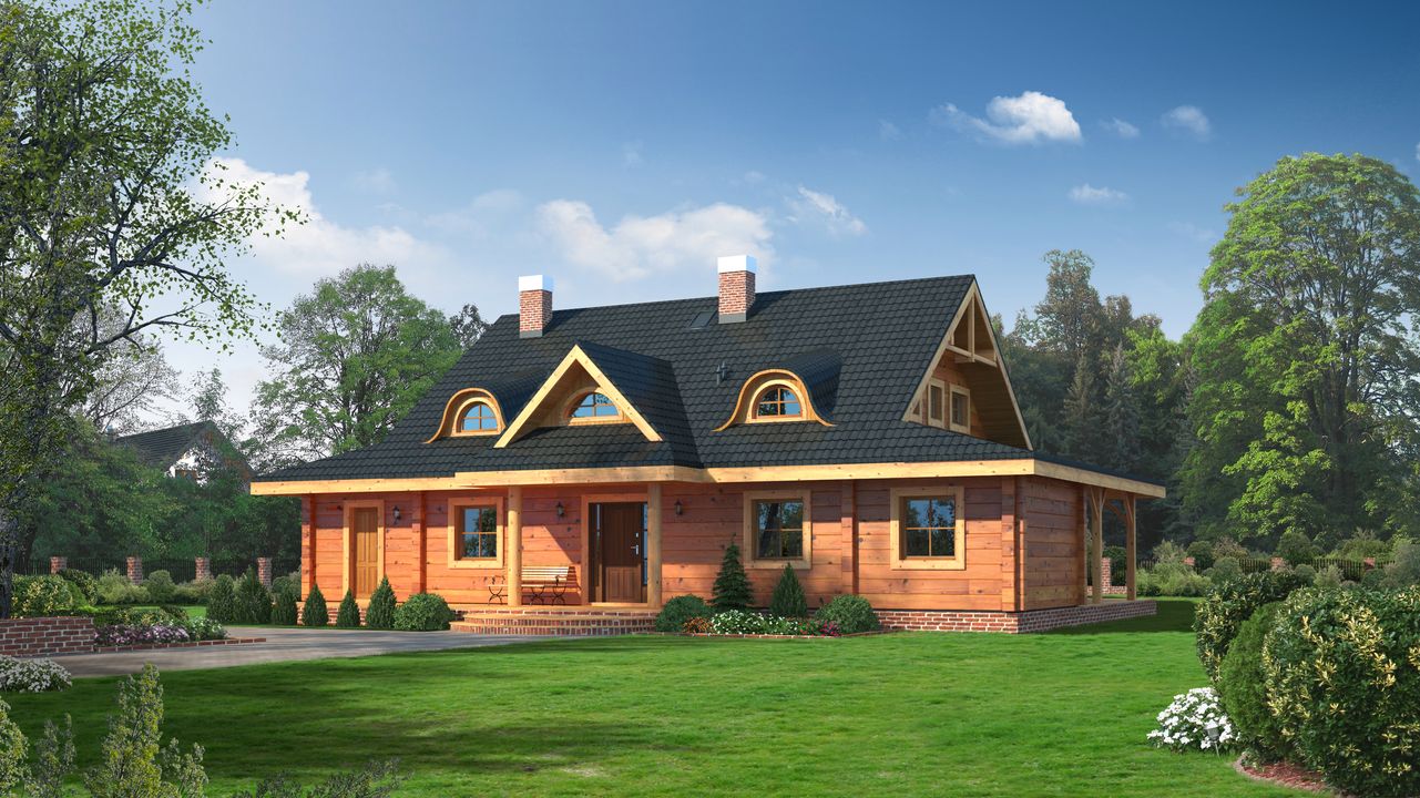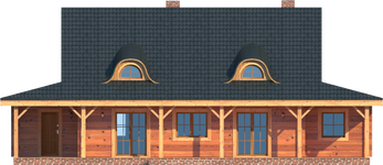 Graficzne opracowanie rzutów poglądowych widocznych na karcie projektu zostało wykonane przez Extradom.pl. Prezentowane przez Extradom.pl wizualizacje wykonane zostały przez autora projektu i należy poczytywać je jedynie za przykład i propozycję wykończenia, wizję architektoniczną autora projektu. Ostateczne wykończenie budynku może nastąpić na wiele sposobów. Szczegółowe rozwiązania zastosowane w oferowanej dokumentacji - w tym również ilość, lokalizacje i wygląd okien, drzwi, kominów - mogą w niewielkim stopniu różnić się od prezentowanej wizualizacji budynku.