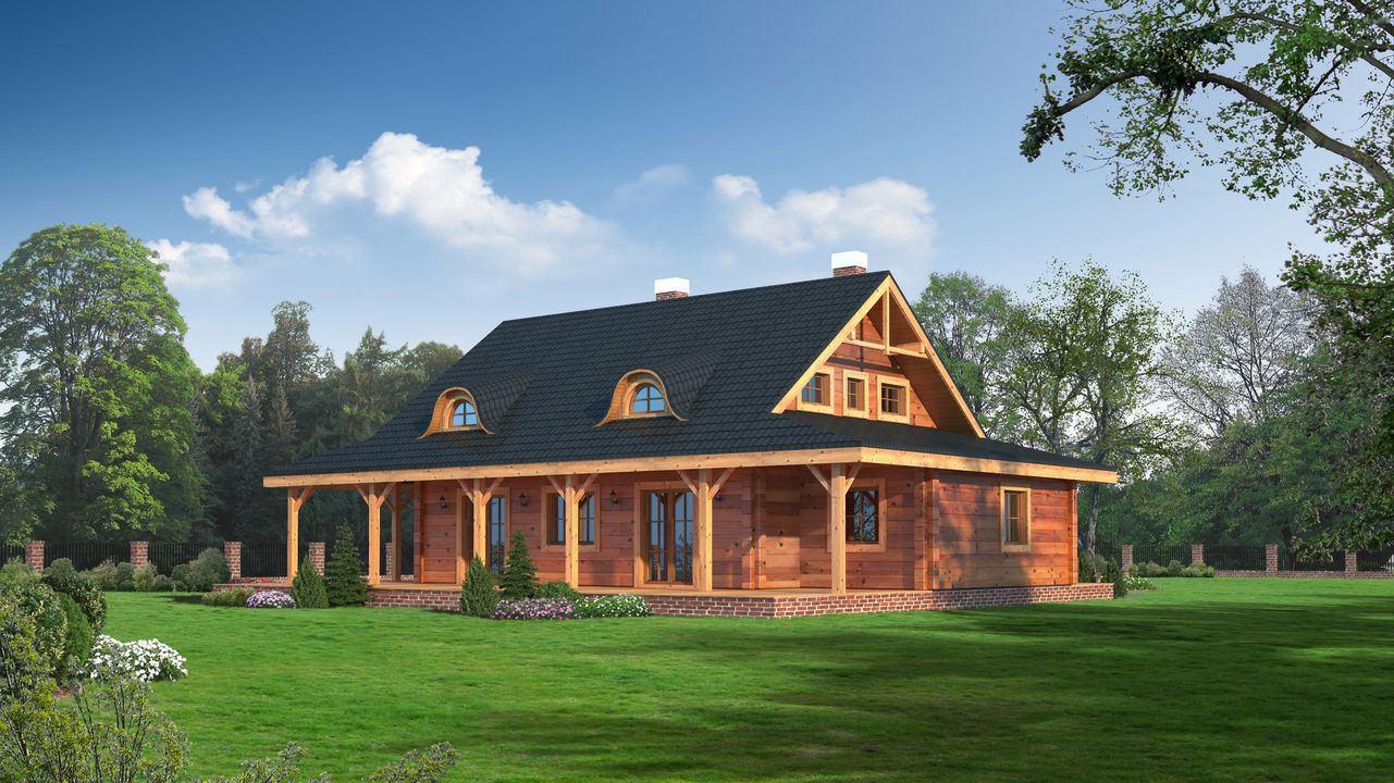 Wysokość ścianki kolankowej: 0.8 m. Ilość drewna na więźbę: 16.1 m³. Strop: drewniany. Pokrycie dachu: dachówka gontopodobna z posypką Gerard Corona. Ściany zewnętrzne: płazy drewniane + wełna mineralna + deska. Ściany wewnętrzne: płazy drewniane. Typ ogrzewania: kocioł gazowy.