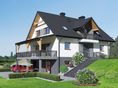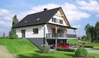 Graficzne opracowanie rzutów poglądowych widocznych na karcie projektu zostało wykonane przez Extradom.pl. Prezentowane przez Extradom.pl wizualizacje wykonane zostały przez autora projektu i należy poczytywać je jedynie za przykład i propozycję wykończenia, wizję architektoniczną autora projektu. Ostateczne wykończenie budynku może nastąpić na wiele sposobów. Szczegółowe rozwiązania zastosowane w oferowanej dokumentacji - w tym również ilość, lokalizacje i wygląd okien, drzwi, kominów - mogą w niewielkim stopniu różnić się od prezentowanej wizualizacji budynku.