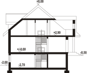 Wysokość ścianki kolankowej: 0.8 m. Strop: płyta żelbetowa. Pokrycie dachu: blacho-dachówka. Ściany zewnętrzne: pustaki ceramiczne + styropian. Ściany wewnętrzne: pustaki ceramiczne. Typ ogrzewania: kocioł gazowy lub kocioł na paliwo stałe. Instalacje dodatkowe: instalacja solarna.