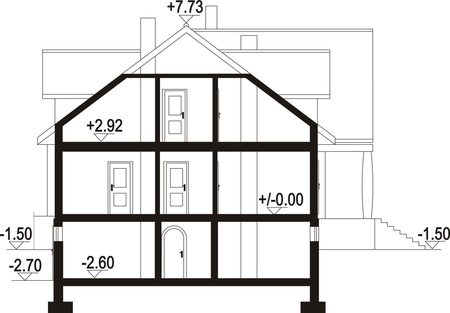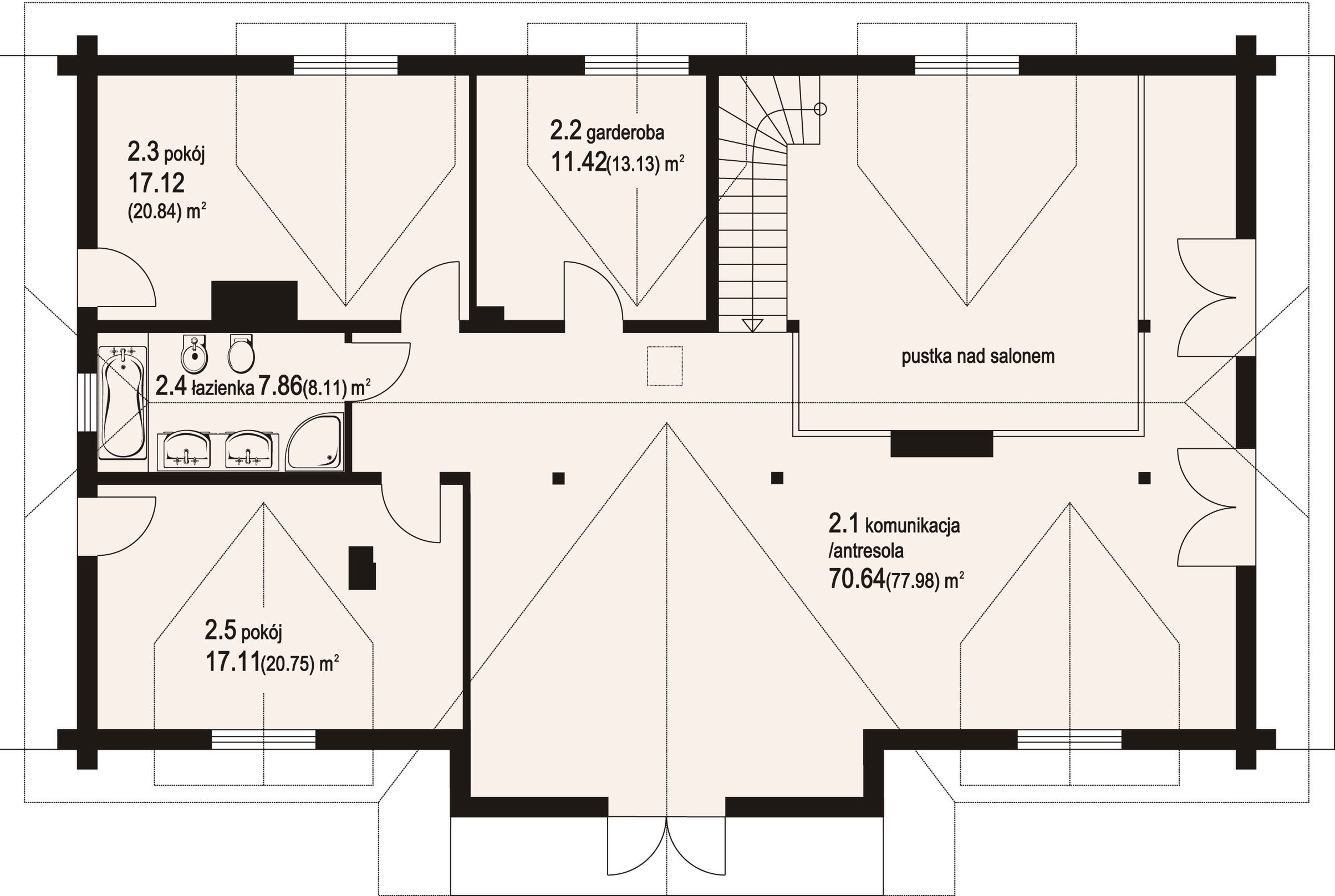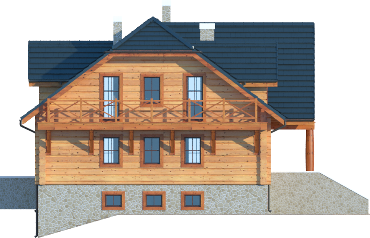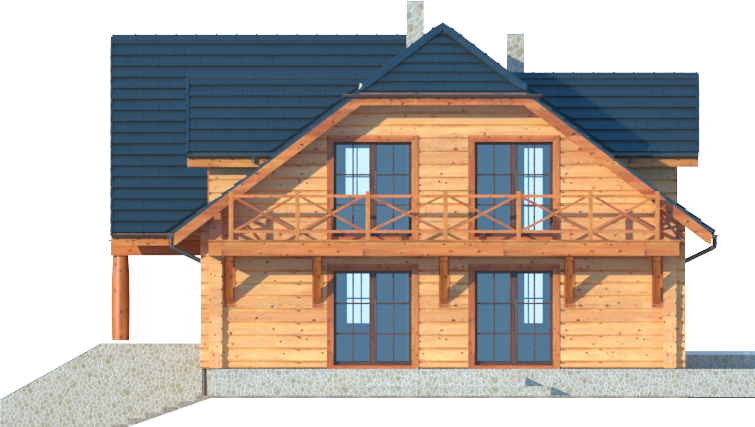 Wys. ścianki kolankowej 0.64 m Ilość drewna na więźbę 17.8 m³. Strop: żelbet + drewniany. Pokrycie dachu: dachówka ceramiczna. Ściany wewnętrzne: płazy drewniane. Ściany zewnętrzne: płazy drewniane + wełna mineralna + deska. Typ ogrzewania: kocioł gazowy.