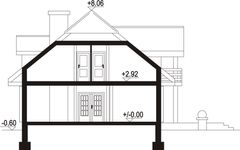 Wys. ścianki kolankowej 0.75 m Ilość drewna na więźbę 13.93 m³. Strop: drewniany. Pokrycie dachu: dachówka ceramiczna. Ściany wewnętrzne: szkieletowe drewniane. Ściany zewnętrzne: szkieletowe drewniane ocieplone wełną mineralną. Typ ogrzewania: kocioł gazowy.