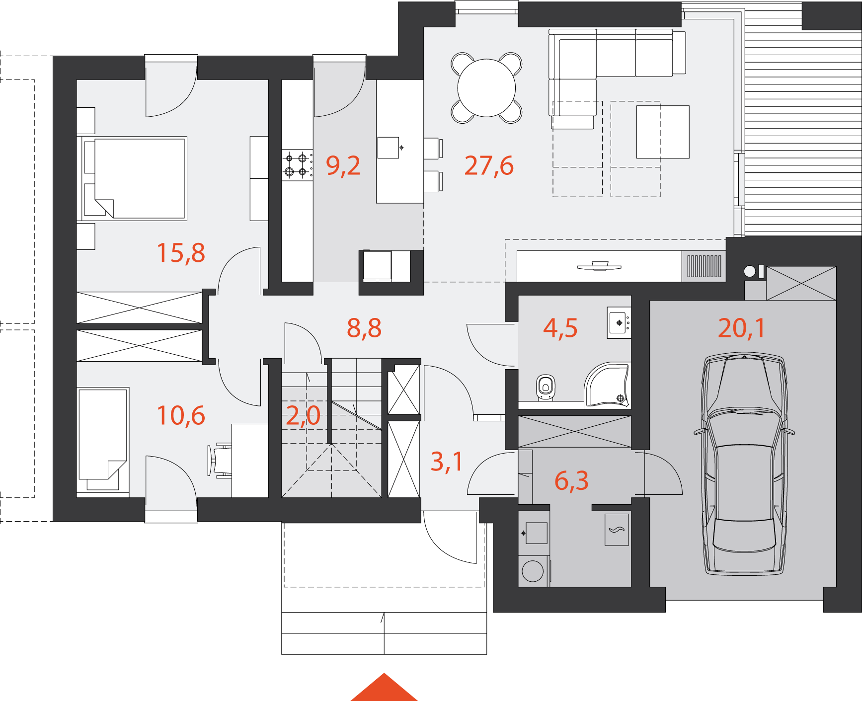 Projekt stanowi aktualną i pełną dokumentację zawierającą część architektoniczno - budowlaną, konstrukcyjną wykonawczą, instalacji wewnętrznych, elektrycznych i teletechnicznych, charakterystykę energetyczną oraz uprawnienia projektantów. Dokumentacja zabezpieczona jest specjalną plombą, której usunięcie uniemożliwi jej zwrot oraz wymianę. Zapraszamy do zamówienia przed zakupem rysunków szczegółowych projektu oraz analizy posiadanej działki w celu upewnienia się, że wybrany projekt domu idealnie na nią pasuje.
