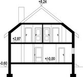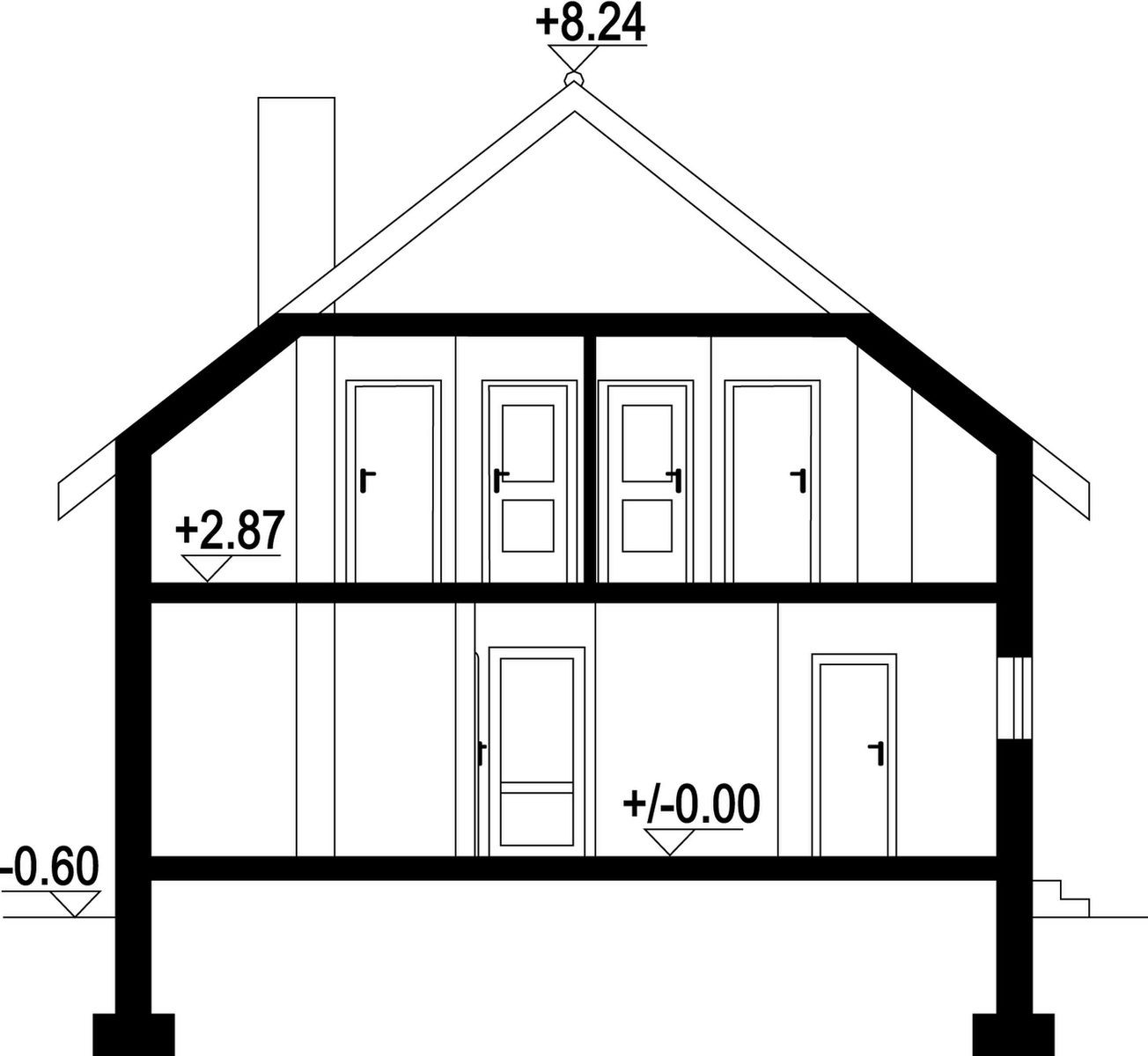 Wys. ścianki kolankowej 1.42 m Ilość drewna na więźbę 10.3 m³. Strop: płyta żelbetowa. Pokrycie dachu: dachówka ceramiczna. Ściany wewnętrzne: bloczki z betonu komórkowego H+H. Ściany zewnętrzne: bloczki z betonu komórkowego H+H. Typ ogrzewania: kocioł gazowy lub kocioł na paliwo stałe.