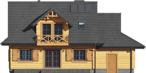 Strop: drewniany. Pokrycie dachu: dachówka gontopodobna z posypką Gerard Corona. Ściany zewnętrzne: płazy drewniane + wełna mineralna + deska. Ściany wewnętrzne: płazy drewniane. Typ ogrzewania: kocioł gazowy lub kocioł na paliwo stałe. Instalacje dodatkowe: instalacja solarna. Inne: okna połaciowe Fakro, brama garażowa Hörmann.
