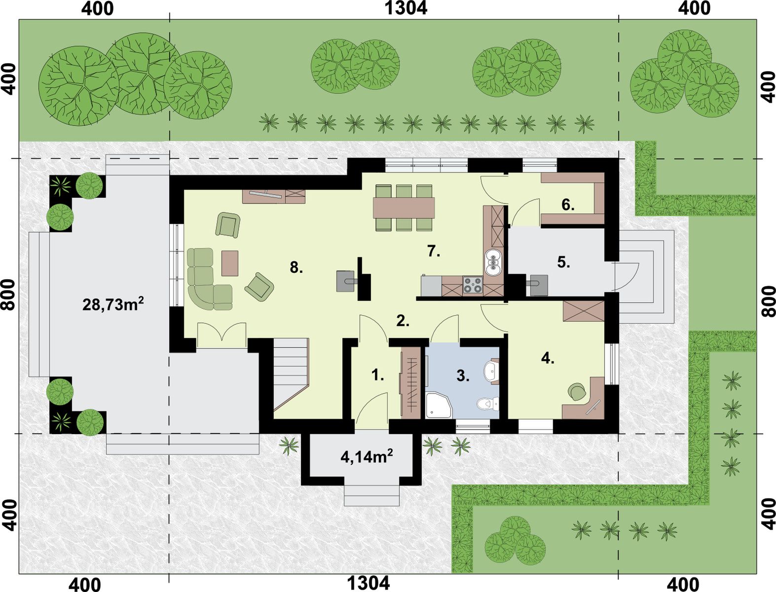 Projekt nie spełnia norm związanych z Eurokodami. Zapytaj Doradcę o dostępność projektu w wersji dostosowanej do Eurokodów. Projekt stanowi aktualną i pełną dokumentację zawierającą część architektoniczno - budowlaną, konstrukcyjną wykonawczą, instalacji wewnętrznych, elektrycznych i teletechnicznych, charakterystykę energetyczną oraz uprawnienia projektantów. Dokumentacja zabezpieczona jest specjalną plombą, której usunięcie uniemożliwi jej zwrot. Zapraszamy do zamówienia przed zakupem rysunków szczegółowych projektu oraz analizy posiadanej działki w celu upewnienia się, że wybrany projekt domu idealnie na nią pasuje. Wymiana rozplombowanego projektu podlega opłacie manipulacyjnej w wysokości 100 zł. O szczegóły dopytaj w Centrum Obsługi Klienta.