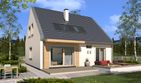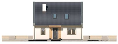 Graficzne opracowanie rzutów poglądowych widocznych na karcie projektu zostało wykonane przez Extradom.pl. Prezentowane przez Extradom.pl wizualizacje wykonane zostały przez autora projektu i należy poczytywać je jedynie za przykład i propozycję wykończenia, wizję architektoniczną autora projektu. Ostateczne wykończenie budynku może nastąpić na wiele sposobów. Szczegółowe rozwiązania zastosowane w oferowanej dokumentacji - w tym również ilość, lokalizacje i wygląd okien, drzwi, kominów - mogą w niewielkim stopniu różnić się od prezentowanej wizualizacji budynku.
