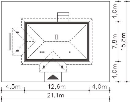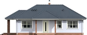 Graficzne opracowanie rzutów poglądowych widocznych na karcie projektu zostało wykonane przez Extradom.pl. Prezentowane przez Extradom.pl wizualizacje wykonane zostały przez autora projektu i należy poczytywać je jedynie za przykład i propozycję wykończenia, wizję architektoniczną autora projektu. Ostateczne wykończenie budynku może nastąpić na wiele sposobów. Szczegółowe rozwiązania zastosowane w oferowanej dokumentacji - w tym również ilość, lokalizacje i wygląd okien, drzwi, kominów - mogą w niewielkim stopniu różnić się od prezentowanej wizualizacji budynku.