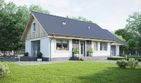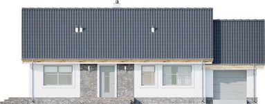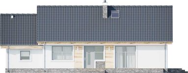 Graficzne opracowanie rzutów poglądowych widocznych na karcie projektu zostało wykonane przez Extradom.pl. Prezentowane przez Extradom.pl wizualizacje wykonane zostały przez autora projektu i należy poczytywać je jedynie za przykład i propozycję wykończenia, wizję architektoniczną autora projektu. Ostateczne wykończenie budynku może nastąpić na wiele sposobów. Szczegółowe rozwiązania zastosowane w oferowanej dokumentacji - w tym również ilość, lokalizacje i wygląd okien, drzwi, kominów - mogą w niewielkim stopniu różnić się od prezentowanej wizualizacji budynku.