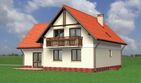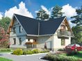 Graficzne opracowanie rzutów poglądowych widocznych na karcie projektu zostało wykonane przez Extradom.pl. Prezentowane przez Extradom.pl wizualizacje wykonane zostały przez autora projektu i należy poczytywać je jedynie za przykład i propozycję wykończenia, wizję architektoniczną autora projektu. Ostateczne wykończenie budynku może nastąpić na wiele sposobów. Szczegółowe rozwiązania zastosowane w oferowanej dokumentacji - w tym również ilość, lokalizacje i wygląd okien, drzwi, kominów - mogą w niewielkim stopniu różnić się od prezentowanej wizualizacji budynku.