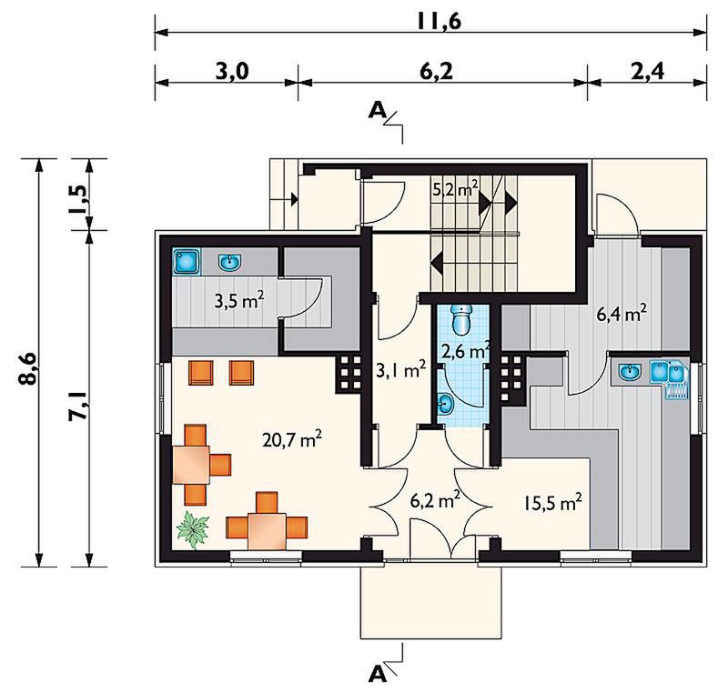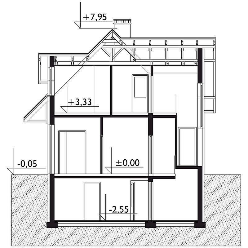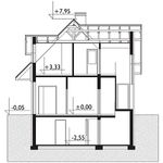Graficzne opracowanie rzutów poglądowych widocznych na karcie projektu zostało wykonane przez Extradom.pl. Prezentowane przez Extradom.pl wizualizacje wykonane zostały przez autora projektu i należy poczytywać je jedynie za przykład i propozycję wykończenia, wizję architektoniczną autora projektu. Ostateczne wykończenie budynku może nastąpić na wiele sposobów. Szczegółowe rozwiązania zastosowane w oferowanej dokumentacji - w tym również ilość, lokalizacje i wygląd okien, drzwi, kominów - mogą w niewielkim stopniu różnić się od prezentowanej wizualizacji budynku.