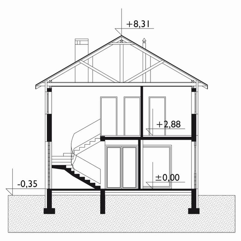 Graficzne opracowanie rzutów poglądowych widocznych na karcie projektu zostało wykonane przez Extradom.pl. Prezentowane przez Extradom.pl wizualizacje wykonane zostały przez autora projektu i należy poczytywać je jedynie za przykład i propozycję wykończenia, wizję architektoniczną autora projektu. Ostateczne wykończenie budynku może nastąpić na wiele sposobów. Szczegółowe rozwiązania zastosowane w oferowanej dokumentacji - w tym również ilość, lokalizacje i wygląd okien, drzwi, kominów - mogą w niewielkim stopniu różnić się od prezentowanej wizualizacji budynku.