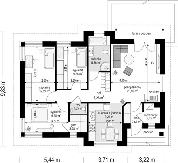 PROJEKT Z BUDOWĄ Istnieje możliwość zaadaptowania tego projektu do technologii prefabrykowanej/modułowej i budowy nawet w 6 miesięcy ze stałym kosztem budowy