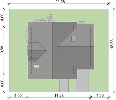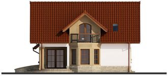 Graficzne opracowanie rzutów poglądowych widocznych na karcie projektu zostało wykonane przez Extradom.pl. Prezentowane przez Extradom.pl wizualizacje wykonane zostały przez autora projektu i należy poczytywać je jedynie za przykład i propozycję wykończenia, wizję architektoniczną autora projektu. Ostateczne wykończenie budynku może nastąpić na wiele sposobów. Szczegółowe rozwiązania zastosowane w oferowanej dokumentacji - w tym również ilość, lokalizacje i wygląd okien, drzwi, kominów - mogą w niewielkim stopniu różnić się od prezentowanej wizualizacji budynku.