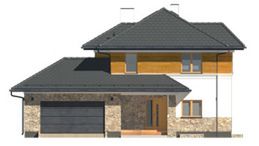 Graficzne opracowanie rzutów poglądowych widocznych na karcie projektu zostało wykonane przez Extradom.pl. Prezentowane przez Extradom.pl wizualizacje wykonane zostały przez autora projektu i należy poczytywać je jedynie za przykład i propozycję wykończenia, wizję architektoniczną autora projektu. Ostateczne wykończenie budynku może nastąpić na wiele sposobów. Szczegółowe rozwiązania zastosowane w oferowanej dokumentacji - w tym również ilość, lokalizacje i wygląd okien, drzwi, kominów - mogą w niewielkim stopniu różnić się od prezentowanej wizualizacji budynku.
