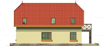 Graficzne opracowanie rzutów poglądowych widocznych na karcie projektu zostało wykonane przez Extradom.pl. Prezentowane przez Extradom.pl wizualizacje wykonane zostały przez autora projektu i należy poczytywać je jedynie za przykład i propozycję wykończenia, wizję architektoniczną autora projektu. Ostateczne wykończenie budynku może nastąpić na wiele sposobów. Szczegółowe rozwiązania zastosowane w oferowanej dokumentacji - w tym również ilość, lokalizacje i wygląd okien, drzwi, kominów - mogą w niewielkim stopniu różnić się od prezentowanej wizualizacji budynku.
