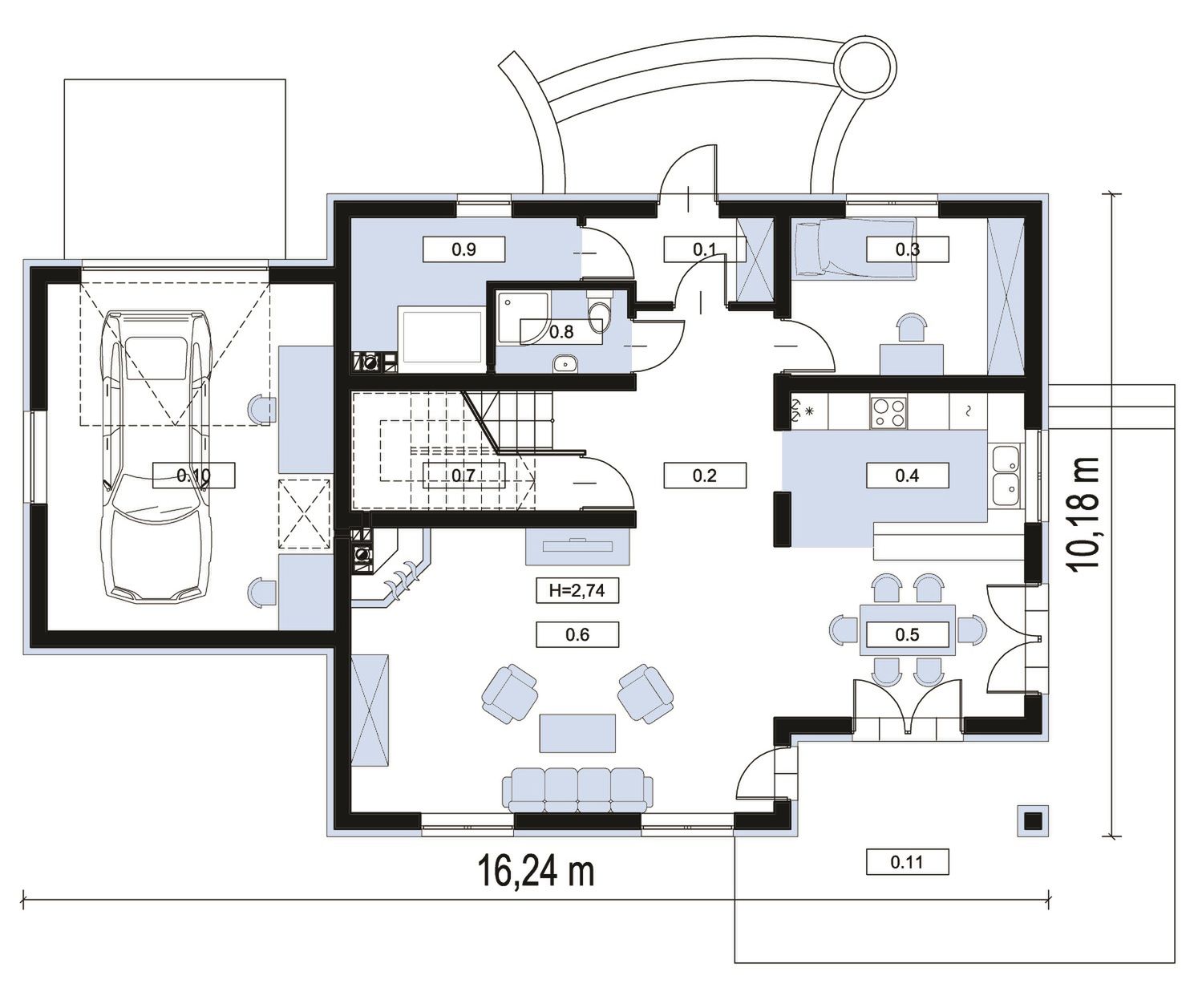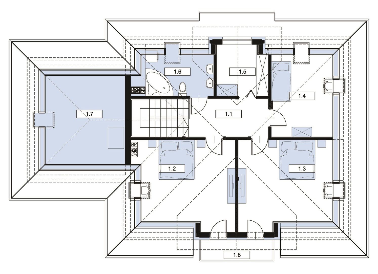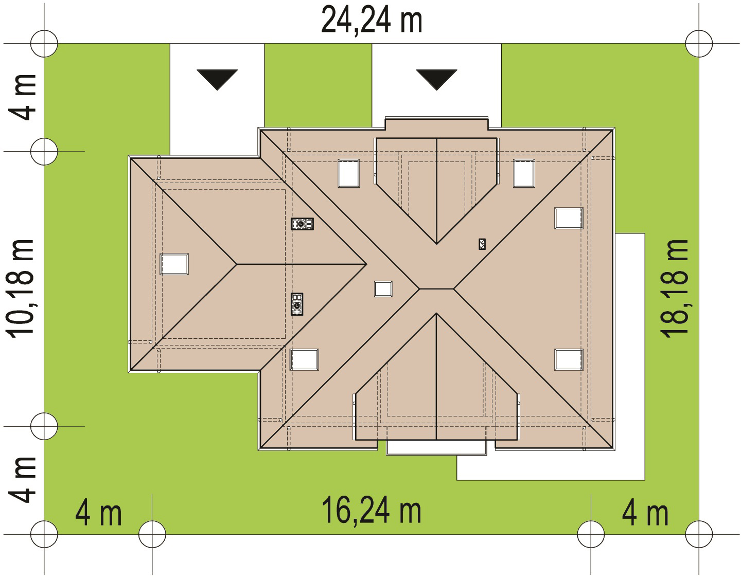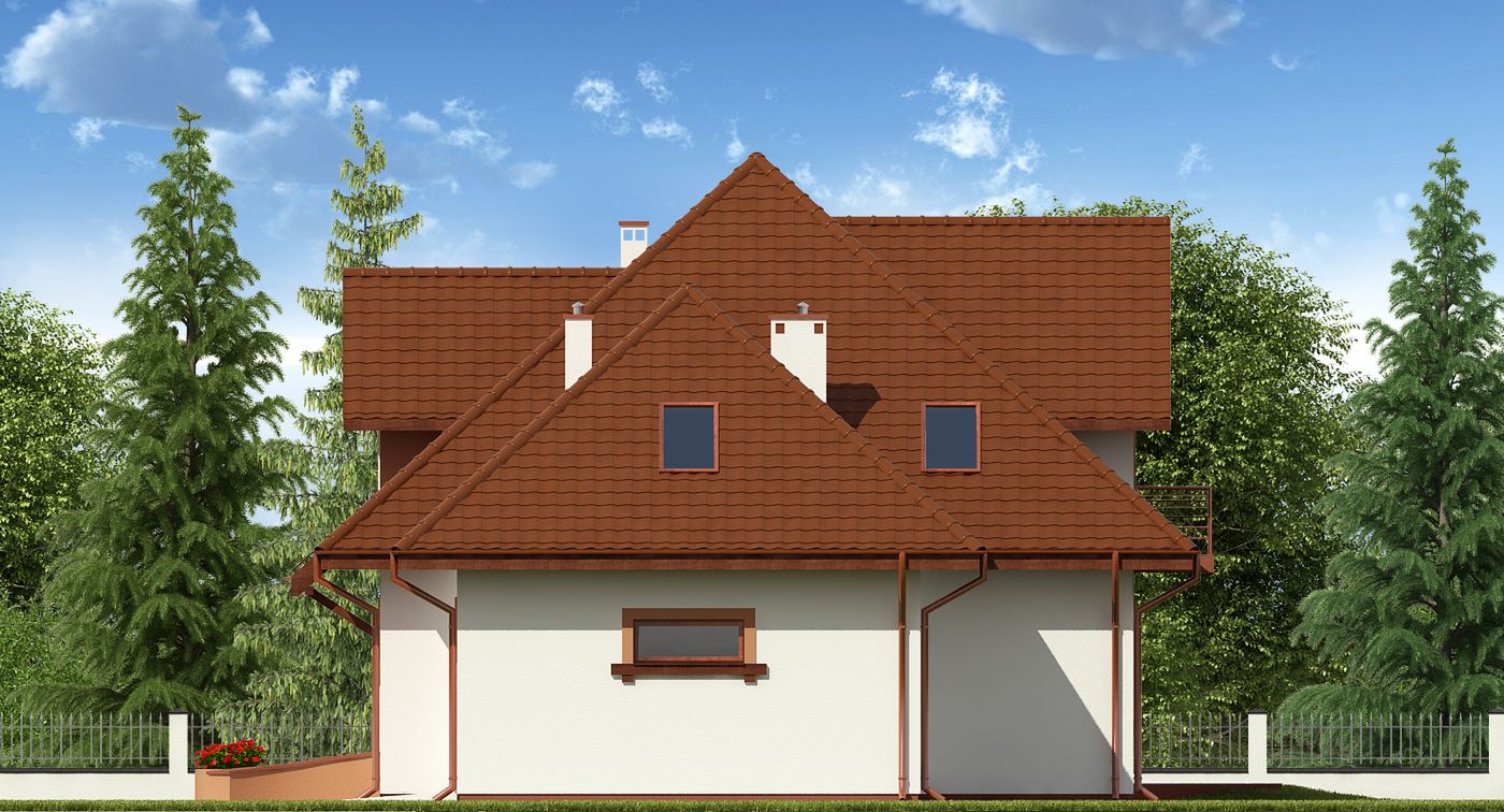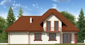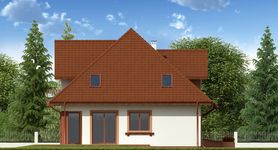 Graficzne opracowanie rzutów poglądowych widocznych na karcie projektu zostało wykonane przez Extradom.pl. Prezentowane przez Extradom.pl wizualizacje wykonane zostały przez autora projektu i należy poczytywać je jedynie za przykład i propozycję wykończenia, wizję architektoniczną autora projektu. Ostateczne wykończenie budynku może nastąpić na wiele sposobów. Szczegółowe rozwiązania zastosowane w oferowanej dokumentacji - w tym również ilość, lokalizacje i wygląd okien, drzwi, kominów - mogą w niewielkim stopniu różnić się od prezentowanej wizualizacji budynku.