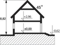 Ściany: 2-warstwowe - YTONG 36,5 cm + styropian Termo Organika. Stropy: żelbetowe, wylewane. Dach: dachówka ceramiczna CREATON, kąt nachylenia 45°. Ogrzewanie: gazowe, pakiet "Kotłownia na paliwo stałe".