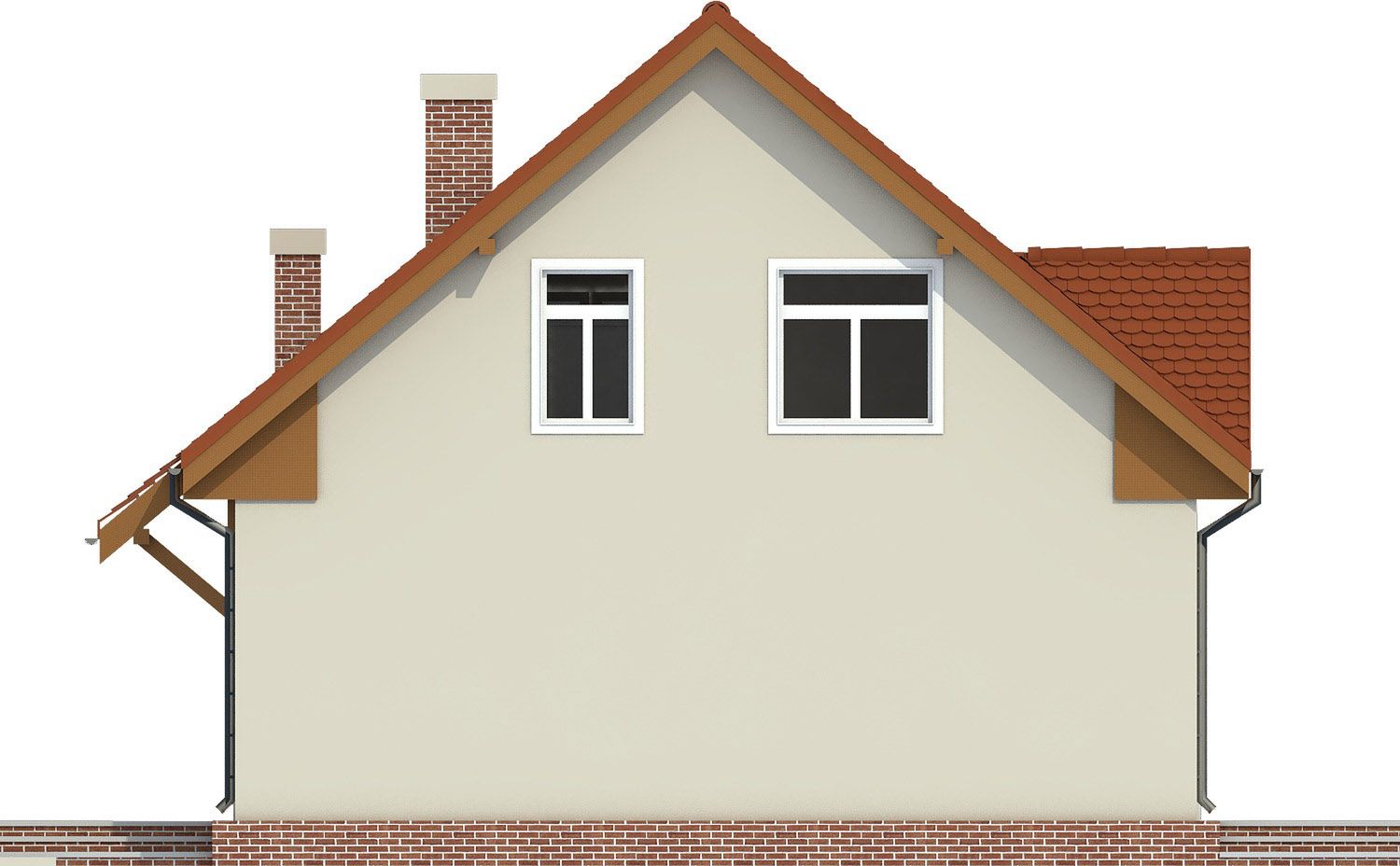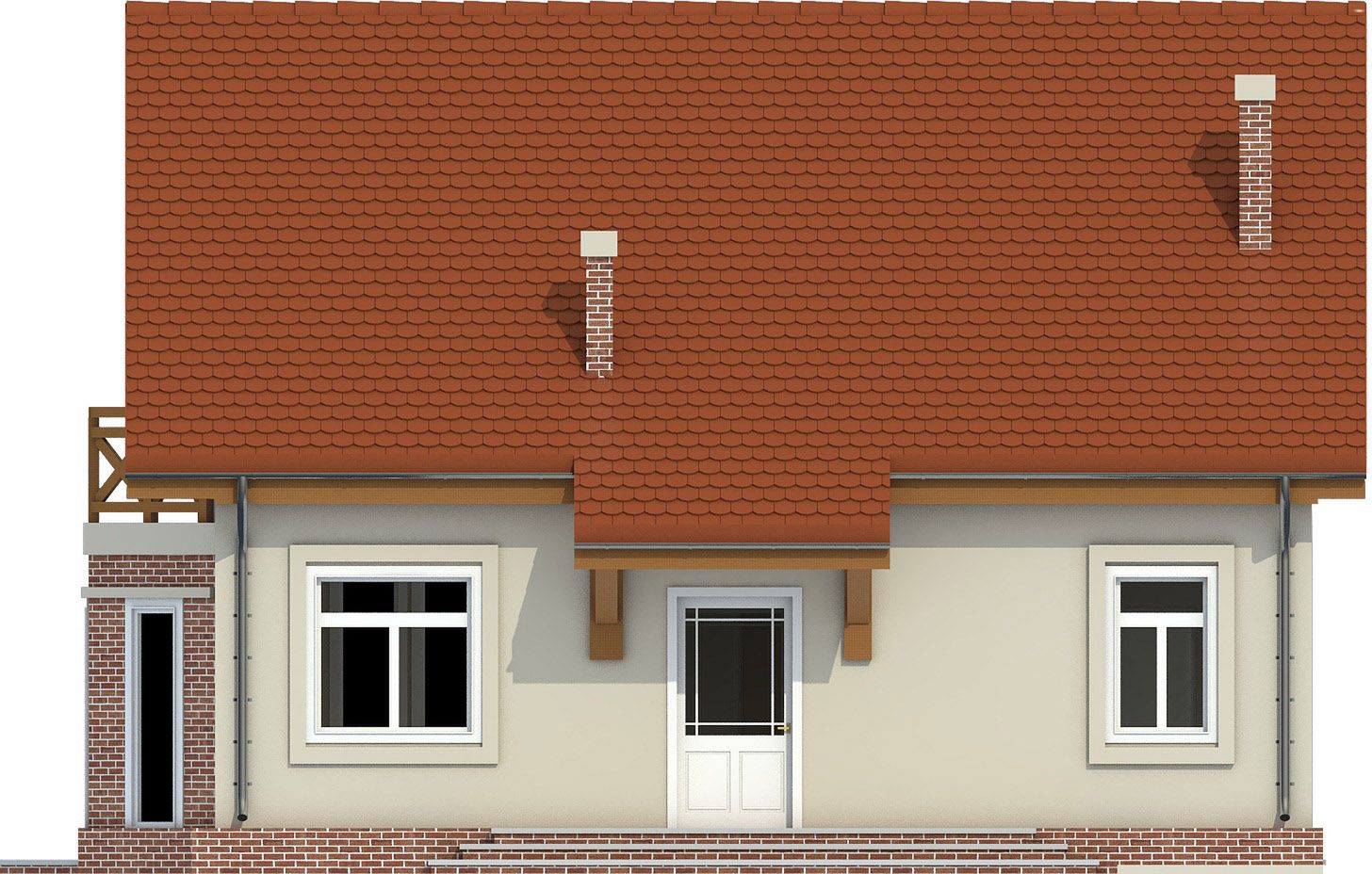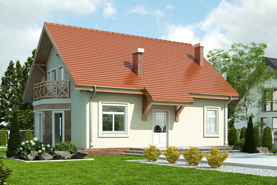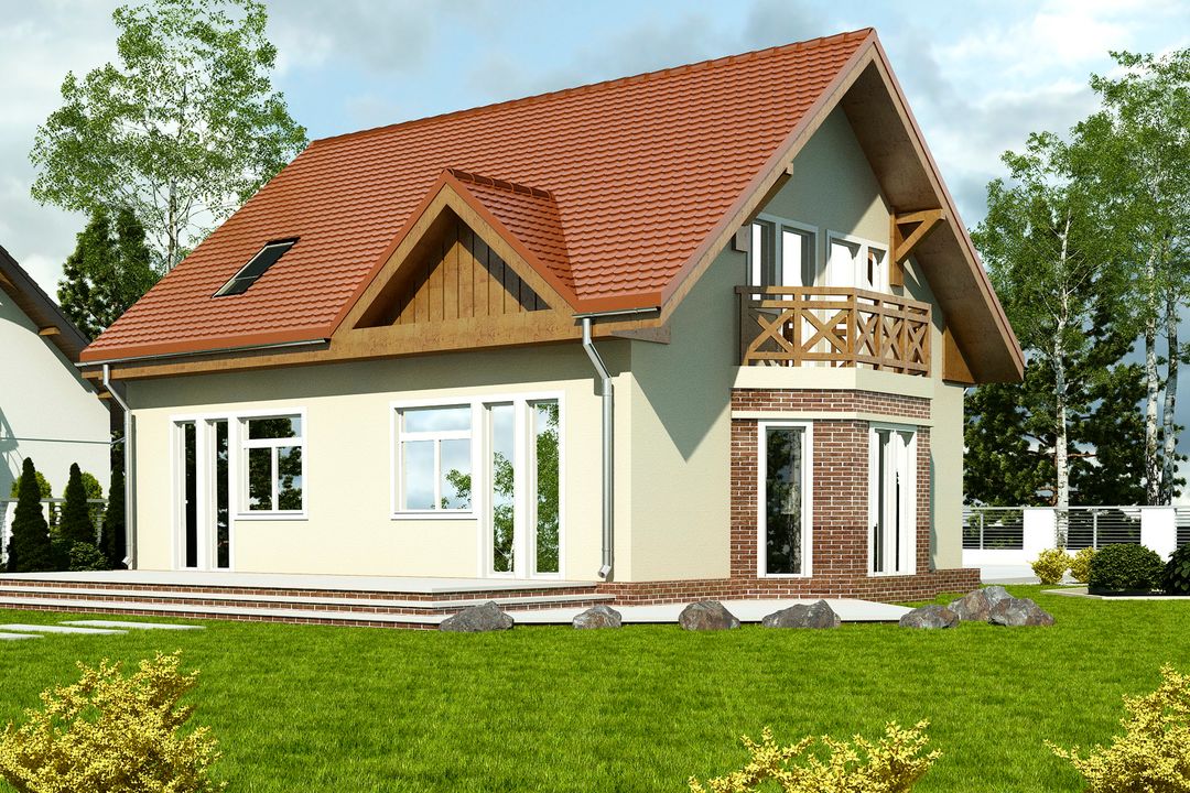 Graficzne opracowanie rzutów poglądowych widocznych na karcie projektu zostało wykonane przez Extradom.pl. Prezentowane przez Extradom.pl wizualizacje wykonane zostały przez autora projektu i należy poczytywać je jedynie za przykład i propozycję wykończenia, wizję architektoniczną autora projektu. Ostateczne wykończenie budynku może nastąpić na wiele sposobów. Szczegółowe rozwiązania zastosowane w oferowanej dokumentacji - w tym również ilość, lokalizacje i wygląd okien, drzwi, kominów - mogą w niewielkim stopniu różnić się od prezentowanej wizualizacji budynku.