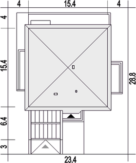Graficzne opracowanie rzutów poglądowych widocznych na karcie projektu zostało wykonane przez Extradom.pl. Prezentowane przez Extradom.pl wizualizacje wykonane zostały przez autora projektu i należy poczytywać je jedynie za przykład i propozycję wykończenia, wizję architektoniczną autora projektu. Ostateczne wykończenie budynku może nastąpić na wiele sposobów. Szczegółowe rozwiązania zastosowane w oferowanej dokumentacji - w tym również ilość, lokalizacje i wygląd okien, drzwi, kominów - mogą w niewielkim stopniu różnić się od prezentowanej wizualizacji budynku.