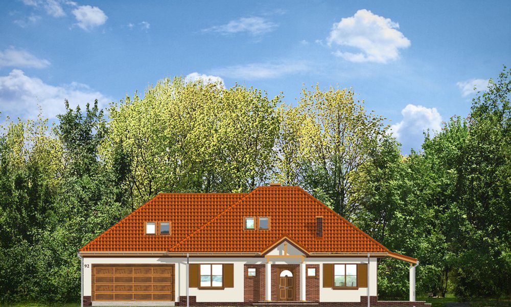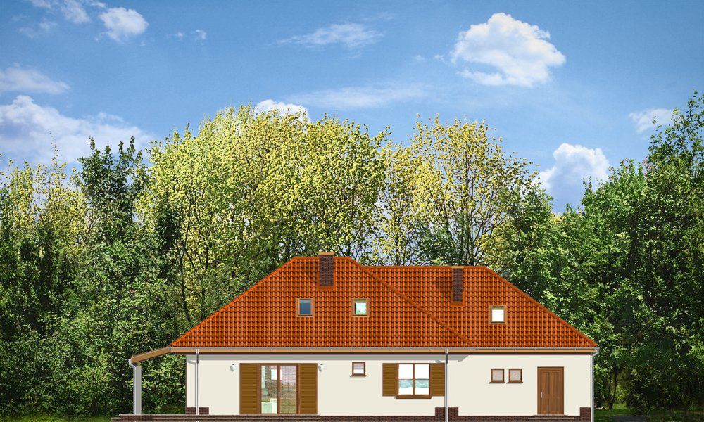 Graficzne opracowanie rzutów poglądowych widocznych na karcie projektu zostało wykonane przez Extradom.pl. Prezentowane przez Extradom.pl wizualizacje wykonane zostały przez autora projektu i należy poczytywać je jedynie za przykład i propozycję wykończenia, wizję architektoniczną autora projektu. Ostateczne wykończenie budynku może nastąpić na wiele sposobów. Szczegółowe rozwiązania zastosowane w oferowanej dokumentacji - w tym również ilość, lokalizacje i wygląd okien, drzwi, kominów - mogą w niewielkim stopniu różnić się od prezentowanej wizualizacji budynku.