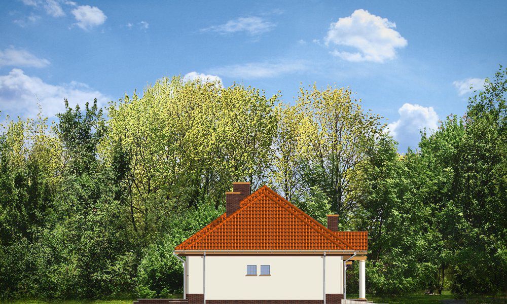 Fundamenty: betonowe wylewane. Ściany zewnętrzne: dwuwarstwowe beton komórkowy 24 + styropian (lub wełna mineralna). Strop: Teriva. Elewacje: tynk cienkowarstwowy. Pokrycie dachu: blachodachówka lub dachówka. Nachylenie dachu: 35 stopnie.
