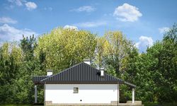Graficzne opracowanie rzutów poglądowych widocznych na karcie projektu zostało wykonane przez Extradom.pl. Prezentowane przez Extradom.pl wizualizacje wykonane zostały przez autora projektu i należy poczytywać je jedynie za przykład i propozycję wykończenia, wizję architektoniczną autora projektu. Ostateczne wykończenie budynku może nastąpić na wiele sposobów. Szczegółowe rozwiązania zastosowane w oferowanej dokumentacji - w tym również ilość, lokalizacje i wygląd okien, drzwi, kominów - mogą w niewielkim stopniu różnić się od prezentowanej wizualizacji budynku.