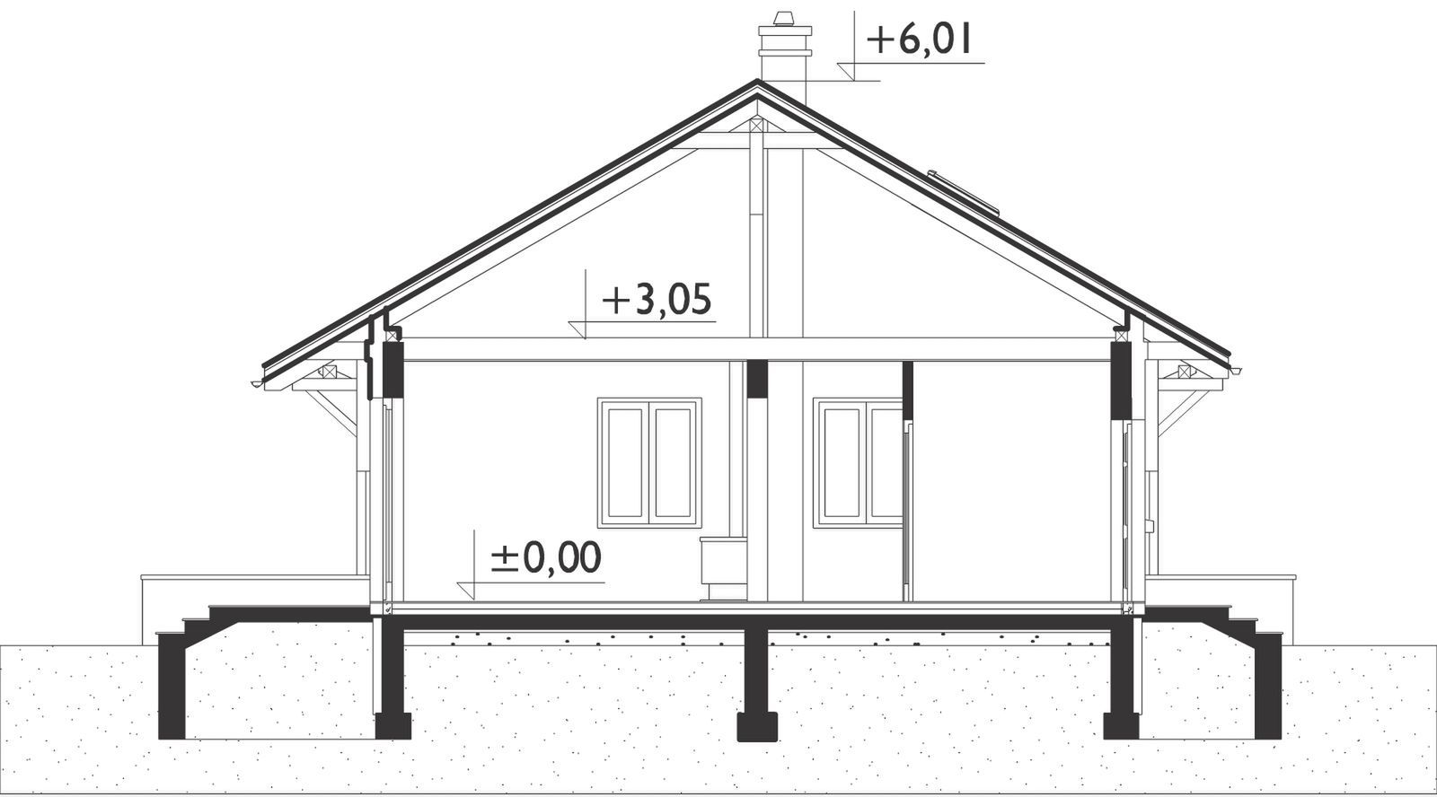 Wersja technologiczna: murowana - ceramika. Strop: drewniany belkowy. Typ schodów: brak. Konstrukcja dachu: drewniana krokwiowa. Typ ogrzewania: Kocioł na gaz. Dostępna wersja z pompą ciepła: Tak. Ściany zewnętrzne: 25 cm ceramika. Ściany wewnętrzne: 25 cm ceramika. Ściany wewnętrzne działowe: 11 cm ceramika.