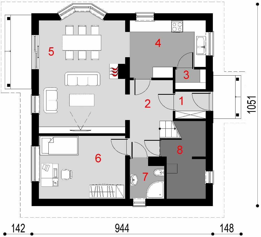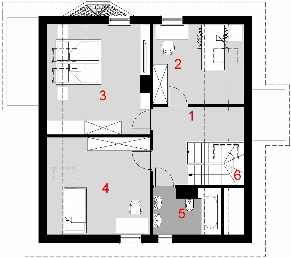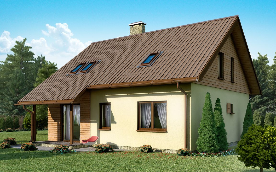 Graficzne opracowanie rzutów poglądowych widocznych na karcie projektu zostało wykonane przez Extradom.pl. Prezentowane przez Extradom.pl wizualizacje wykonane zostały przez autora projektu i należy poczytywać je jedynie za przykład i propozycję wykończenia, wizję architektoniczną autora projektu. Ostateczne wykończenie budynku może nastąpić na wiele sposobów. Szczegółowe rozwiązania zastosowane w oferowanej dokumentacji - w tym również ilość, lokalizacje i wygląd okien, drzwi, kominów - mogą w niewielkim stopniu różnić się od prezentowanej wizualizacji budynku.