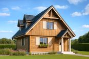 Fundamenty: ławy betonowe. Ściany zewnętrzne: 1. bale drewniane ocieplane od wewnątrz wełną mineralną 2. szkieletowa konstrukcja drewniana. Strop: drewniany belkowy. Elewacje: bale, szalówka drewniana lub tynk cienkowarstwowy (na płycie lub styropianie). Pokrycie dachu: dachówka lub blachodachówka. Nachylenie dachu: 45 stopni.