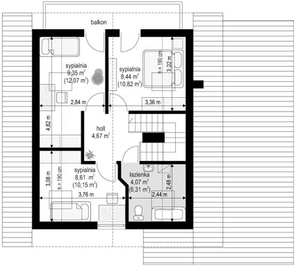 Graficzne opracowanie rzutów poglądowych widocznych na karcie projektu zostało wykonane przez Extradom.pl. Prezentowane przez Extradom.pl wizualizacje wykonane zostały przez autora projektu i należy poczytywać je jedynie za przykład i propozycję wykończenia, wizję architektoniczną autora projektu. Ostateczne wykończenie budynku może nastąpić na wiele sposobów. Szczegółowe rozwiązania zastosowane w oferowanej dokumentacji - w tym również ilość, lokalizacje i wygląd okien, drzwi, kominów - mogą w niewielkim stopniu różnić się od prezentowanej wizualizacji budynku.