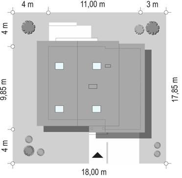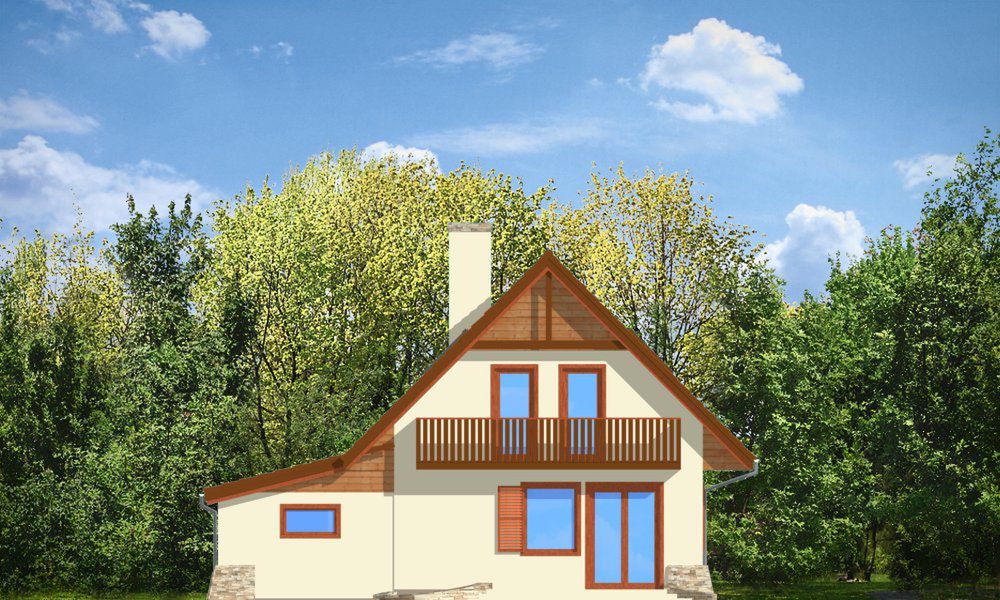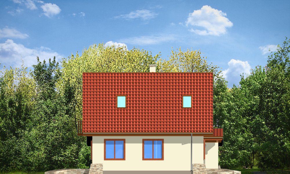 Fundamenty: betonowe. Ściany: gazobeton + styropian. Elewacje: tynk cienkowarstwowy. Pokrycie dachu: dachówka ceramiczna lub blachodachówka. Nachylenie dachu: 45 i 14 stopni.