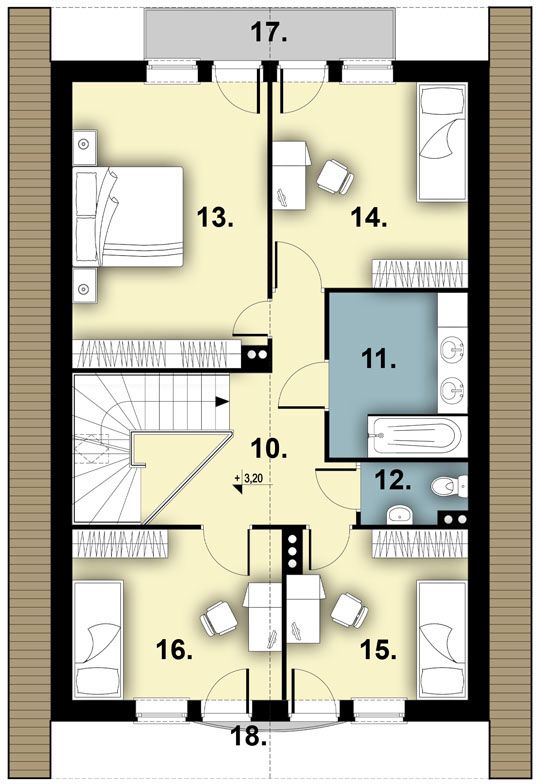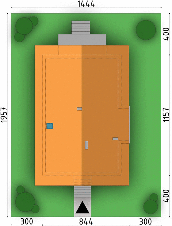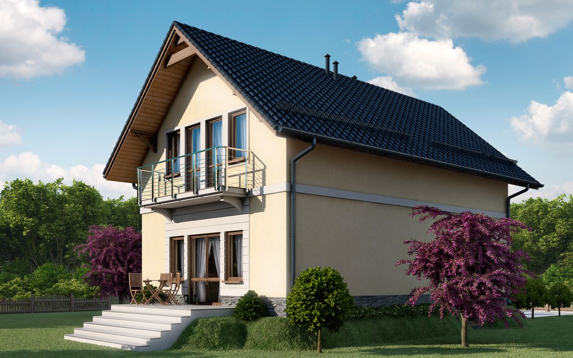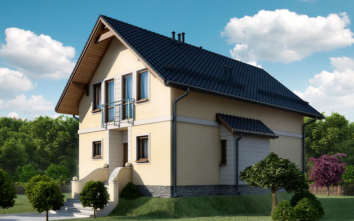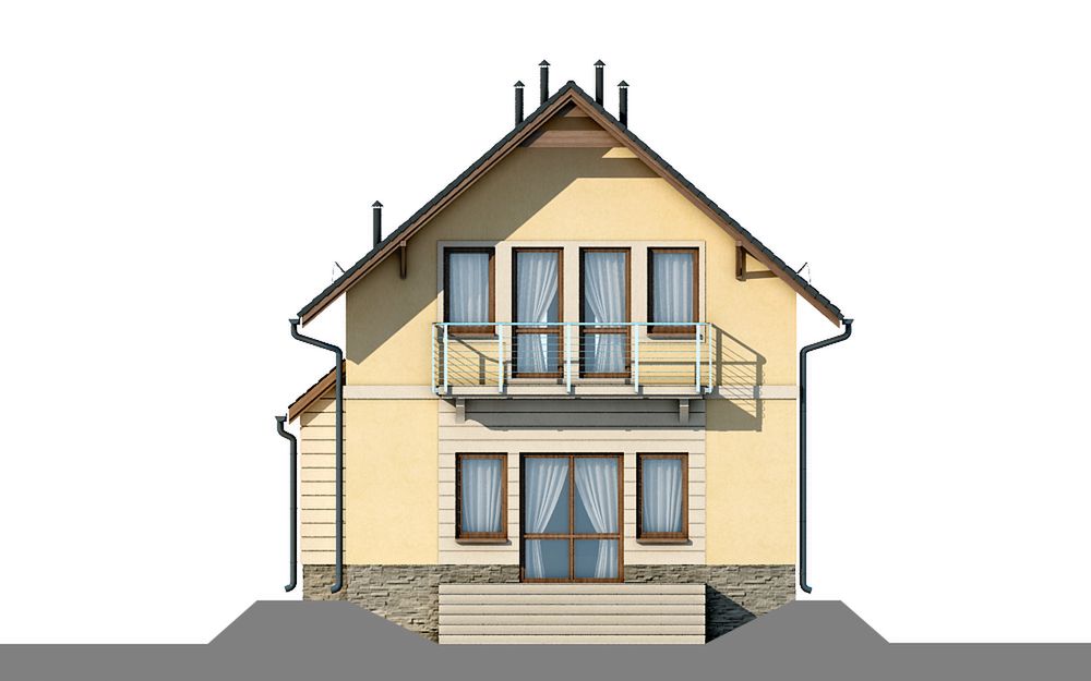 Graficzne opracowanie rzutów poglądowych widocznych na karcie projektu zostało wykonane przez Extradom.pl. Prezentowane przez Extradom.pl wizualizacje wykonane zostały przez autora projektu i należy poczytywać je jedynie za przykład i propozycję wykończenia, wizję architektoniczną autora projektu. Ostateczne wykończenie budynku może nastąpić na wiele sposobów. Szczegółowe rozwiązania zastosowane w oferowanej dokumentacji - w tym również ilość, lokalizacje i wygląd okien, drzwi, kominów - mogą w niewielkim stopniu różnić się od prezentowanej wizualizacji budynku.