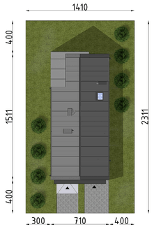 Graficzne opracowanie rzutów poglądowych widocznych na karcie projektu zostało wykonane przez Extradom.pl. Prezentowane przez Extradom.pl wizualizacje wykonane zostały przez autora projektu i należy poczytywać je jedynie za przykład i propozycję wykończenia, wizję architektoniczną autora projektu. Ostateczne wykończenie budynku może nastąpić na wiele sposobów. Szczegółowe rozwiązania zastosowane w oferowanej dokumentacji - w tym również ilość, lokalizacje i wygląd okien, drzwi, kominów - mogą w niewielkim stopniu różnić się od prezentowanej wizualizacji budynku.