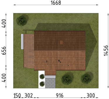 Graficzne opracowanie rzutów poglądowych widocznych na karcie projektu zostało wykonane przez Extradom.pl. Prezentowane przez Extradom.pl wizualizacje wykonane zostały przez autora projektu i należy poczytywać je jedynie za przykład i propozycję wykończenia, wizję architektoniczną autora projektu. Ostateczne wykończenie budynku może nastąpić na wiele sposobów. Szczegółowe rozwiązania zastosowane w oferowanej dokumentacji - w tym również ilość, lokalizacje i wygląd okien, drzwi, kominów - mogą w niewielkim stopniu różnić się od prezentowanej wizualizacji budynku.